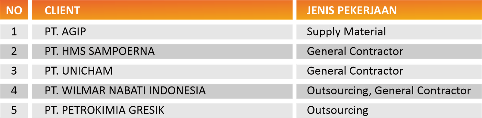 Didukung oleh tim profesional, tenaga terampil, serta jaringan yang kuat, kami menyediakan berbagai layanan terintegrasi seperti Kontraktor Umum, Supplier Material, Engineering, dan Outsourcing tenaga kerja.